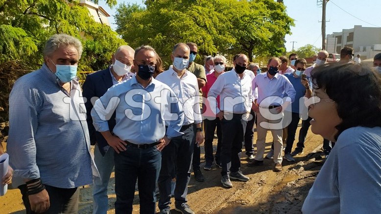 Κυβερνητικό κλιμάκιο με τον Υπουργό Οικονομικών, Χρήστο Σταϊκούρα και τον Υπουργό Υποδομών και Μεταφορών Κώστα Καραμανλή βρίσκεται στις περιοχές που επλήγησαν στην Εύβοια από τη φονική κακοκαιρία, η οποία άφησε πίσω της νεκρούς αλλά και τεράστιες καταστροφές σε σπίτια, επιχειρήσεις, καλλιέργειες και υποδομές. Το κυβερνητικό κλιμάκιο βρίσκεται στα Ψαχνά όπου και ενημερώθηκαν από τον Δήμαρχο, Γιώργο Ψαθά. Το κλιμάκιο πραγματοποιεί συνεχόμενα στάσεις για την αποτίμηση των καταστροφών που επέφερε η κακοκαιρία.