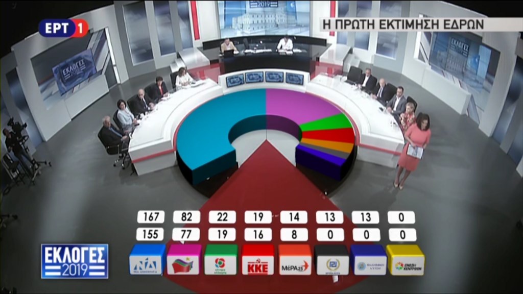 Αυτή είναι η πρώτη εκτίμηση για τις έδρες που θα καταλάβουν τα κόμματα στη Βουλή, σύμφωνα με το exit poll, που δόθηκε στη δημοσιότητα.