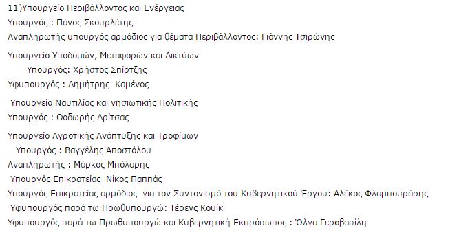 Στη σελίδα όπου παρουσιάζεται η πλήρης σύνθεσή της, το όνομά του υπάρχει κανονικά στην θέση του υφυπουργού Υποδομών και δεν έχει αντικατασταθεί από αυτό του Παναγιώτη Σγουρίδη.