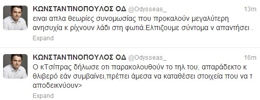 Μέσω του προσωπικού του λογαριασμού στο twitter, ο Οδυσσέας Κωνσταντινόπουλος αναφέρθηκε στην αποκάλυψη της Realnews για την καταγγελία Τσίπρα στην Κ.Ο. του ΣΥΡΙΖΑ.