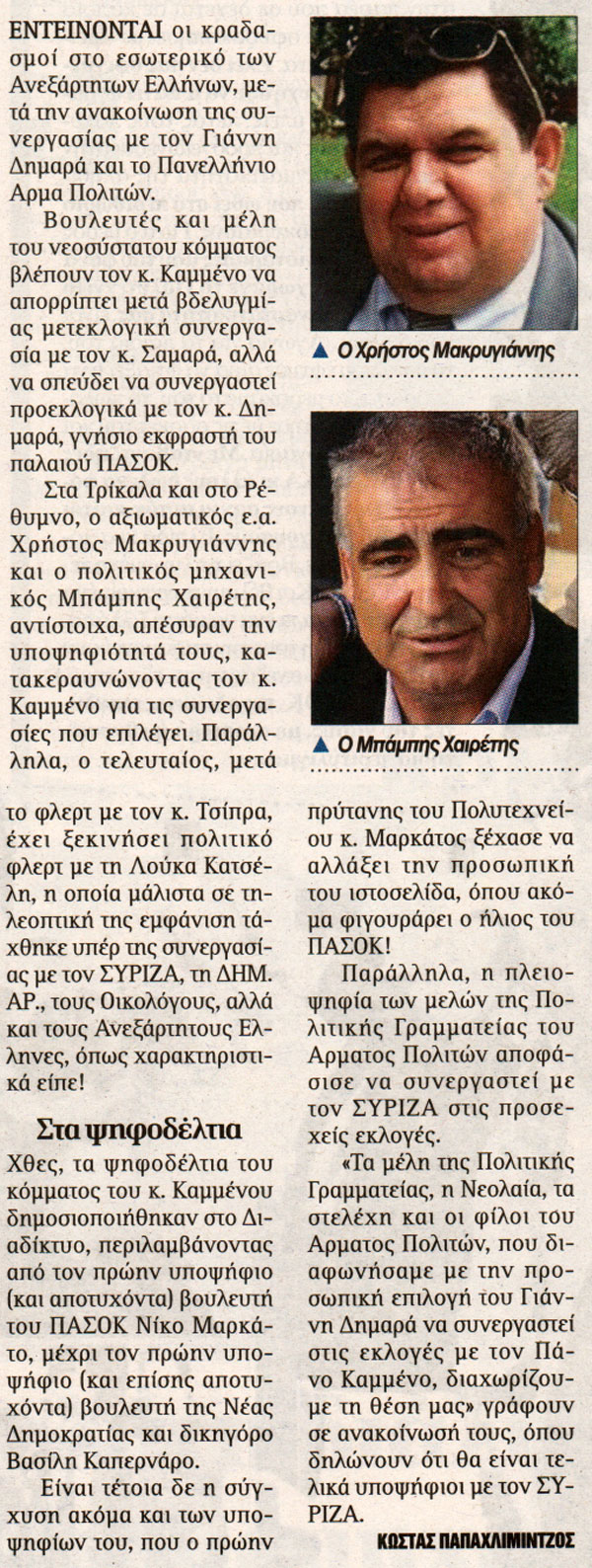 Το δημοσίευμα αλιεύσαμε στην εφημερίδα “Δημοκρατία”