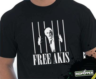 Το ελληνικό επιχειρηματικό δαιμόνιο και το καυστικό χιούμορ του Έλληνα, εμπνεύστηκαν από το σκάνδαλο των υποβρυχίων και τον Άκη Τσοχατζόπουλο και ορίστε το αποτέλεσμα: μπλουζάκια με το σύνθημα FREE AKIS!