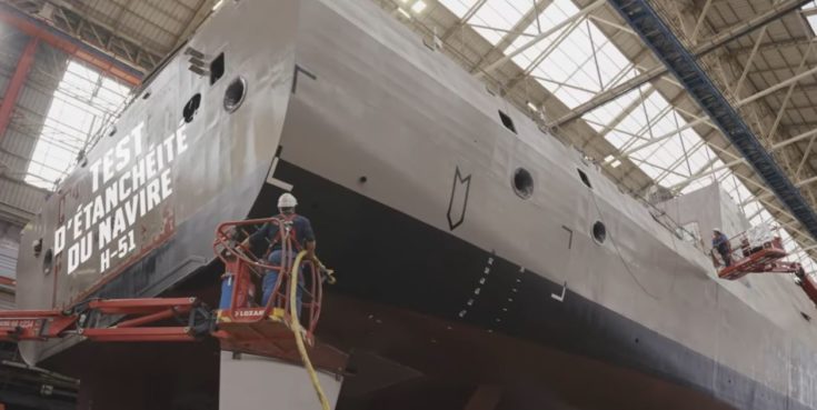 Ο γαλλικός ναυπηγικός Όμιλος Naval Group έδωσε στη δημοσιότητα πλάνα από την προετοιμασία καθέλκυσης της φρεγάτας FDI – γνωστής ως Belh@rra – κλάσης «Κίμων» που κατασκευάζεται στα ναυπηγεία της στο Λοριάν της Γαλλίας για λογαριασμό του Πολεμικού Ναυτικού της Ελλάδας και καθελκύστηκε στις 4 Οκτωβρίου 2023.