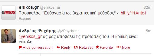 Μέσω του twitter και το enikos.gr απάντησε ο κ. Ψυχάρης στον κ. Τσουκαλά, τονίζοντας, απευθυνόμενος στον ευρωβουλευτή της ΝΔ: