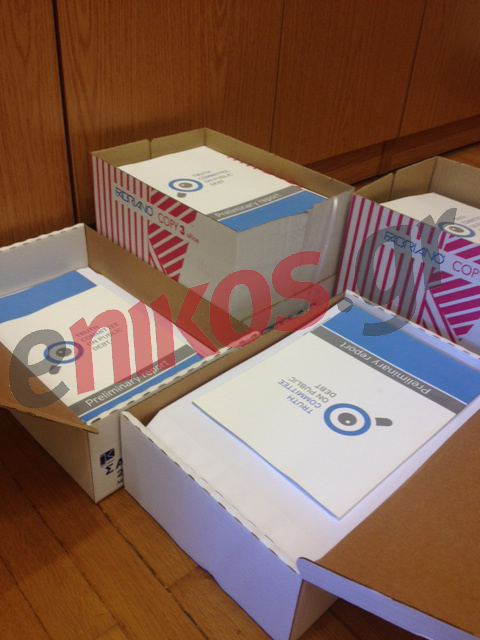 Η δαπάνη του Ελληνικού Κοινοβουλίου εκτιμάται στα 35.000 ευρώ, χωρίς να υπολογίζονται στο κόστος εκτύπωσης οι εργατοώρες των υπαλλήλων που εμπλέκονται στη διαδικασία εκτύπωσης. Ωστόσο το κόστος αποτελεί λεπτομέρεια μπροστά στη μυστικοπάθεια και διακριτικότητα της “επιχείρησης” καθώς όπως αναφέρουν οι πληροφορίες μας, η εκτύπωση είναι μια κάθετη διαδικασία, στη συνέχεια αυτοκίνητο της Βουλής παραλαμβάνει τα έντυπα, εντός του κτιρίου στη Λένορμαν και τα μεταφέρει στους χώρους του Κοινοβουλίου. Μερικές κούτες όμως “έχασαν” το δρόμο τους και τις βλέπετε στις φωτογραφίες του enikos.gr.
