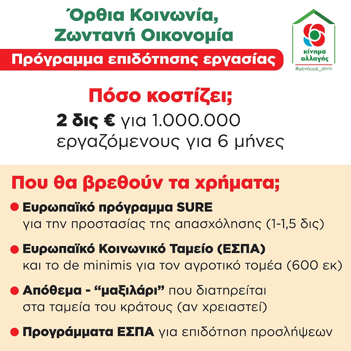 - Από το πρόγραμμα SURE που ενέκρινε η ΕΕ για βραχυπρόθεσμες παρεμβάσεις προστασίας της απασχόλησης. Για την Ελλάδα αντιστοιχεί 1-1,5 δις ευρώ.