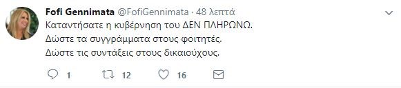 «Καταντήσατε η κυβέρνηση του ΔΕΝ ΠΛΗΡΩΝΩ. Δώστε τα συγγράμματα στους φοιτητές. Δώστε τις συντάξεις στους δικαιούχους».
