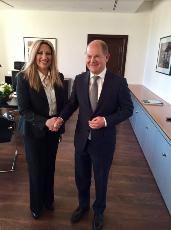 H πρόεδρος του Κινήματος Αλλαγής, Φώφη Γεννηματά, συναντήθηκε σήμερα με τον Ομοσπονδιακό Υπουργό Οικονομικών και Αντικαγκελάριο της Γερμανίας, Όλαφ Σολτς.