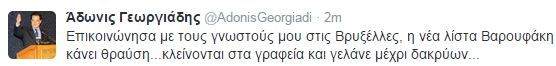 Τη λίστα με τις μεταρρυθμίσεις που θα προτείνει στο Eurogroup της Δευτέρας ο υπουργός Οικονομικών Γιάνης Βαρουφάκης σχολίασε στο twitter ο Άδωνις Γεωργιάδης.