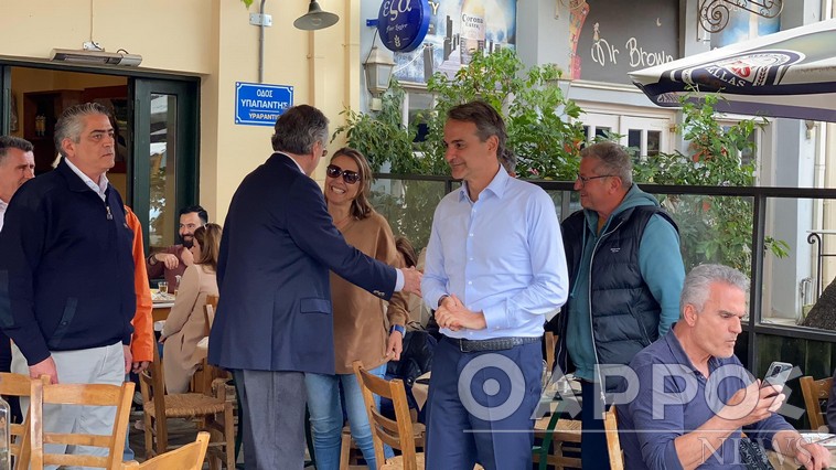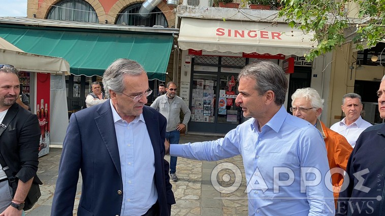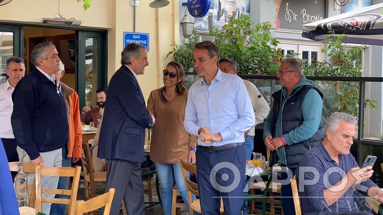 Ο πρωθυπουργός Κυριάκος Μητσοτάκης γευμάτισε μαζί με τον πρώην πρωθυπουργό Αντώνη Σαμαρά κατά τη διάρκεια της συνάντησής τους σε εστιατόριο στην Καλαμάτα, το μεσημέρι της Παρασκευής, 21 Απριλίου.