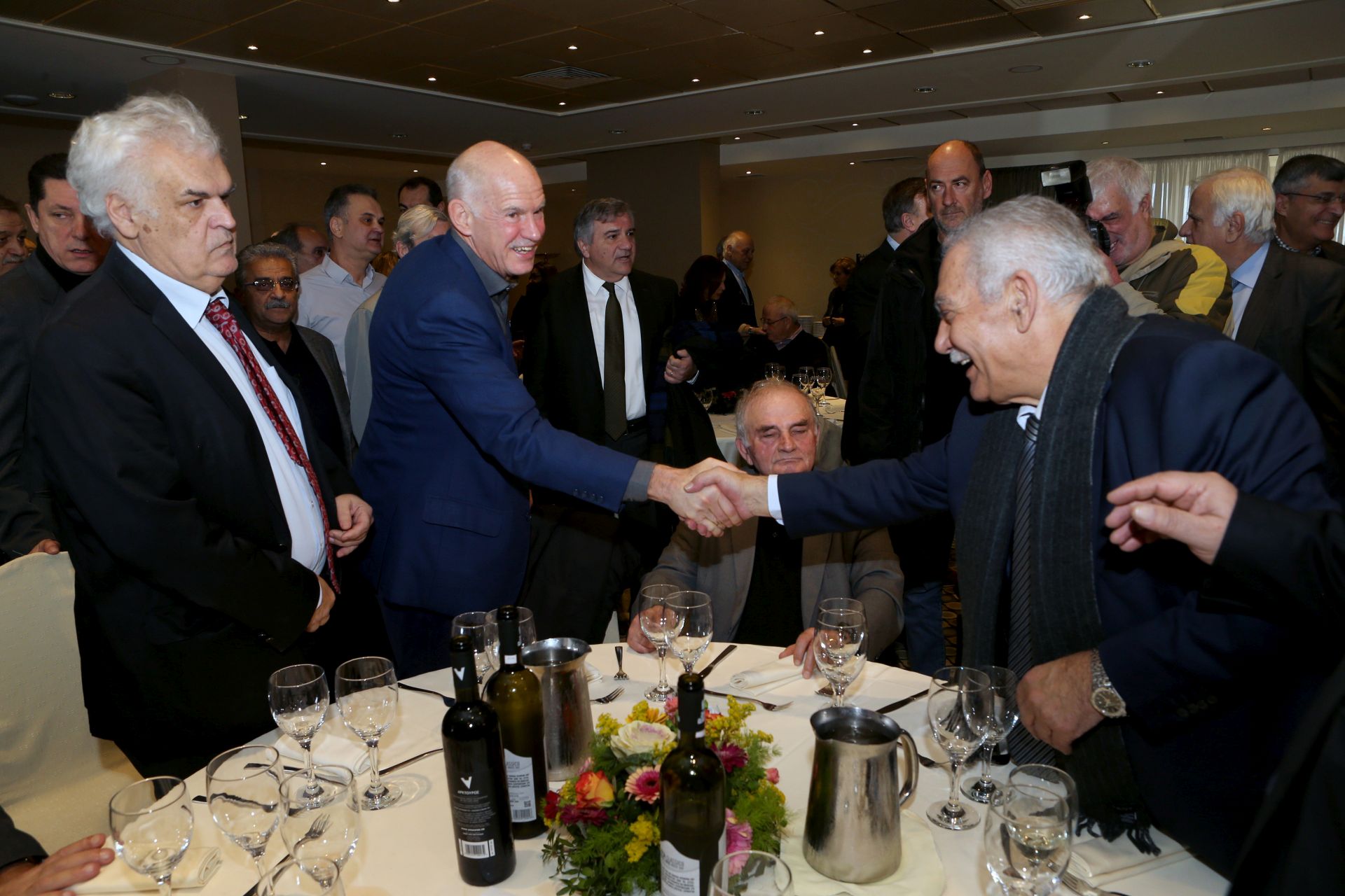 Ο Γιώργος Παπανδρέου έφτασε στο γεύμα συνοδευόμενος από τον Μιχάλη Καρχιμάκη και τον Δημήτρη Ρέππα, ενώ παρών ήταν και ο Μιχάλης Χρυσοχοΐδης. Στο ειδικό τραπέζι-ροτόντα για το ΚΙΔΗΣΟ του Γιώργου Παπανδρέου, κάθισαν όλα τα στελέχη καθώς και οι κκ. Κρεμαστινός και Κεγκέρογλου.