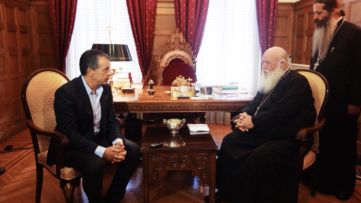 Η αξιοποίηση της εκκλησιαστικής περιουσίας ήταν το κύριο θέμα στη συνάντηση του επικεφαλής του Ποταμιού Σταύρου Θεοδωράκη με τον αρχιεπίσκοπο Ιερώνυμο στα γραφεία της Αρχιεπισκοπής. Στις δηλώσεις που ακολούθησαν ο αρχιεπίσκοπος ανέφερε ότι «στις δύσκολές μέρες που ζούμε, ο λαός θα πρέπει να ακούσει την αλήθεια, ακόμη κι αν είναι πικρή».