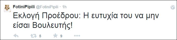 “Εκλογή Προέδρου: Η ευτυχία του να μην είσαι βουλευτής!” έγραψε στο Twitter.