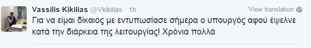 “Για να είμαι δίκαιος με εντυπωσίασε σήμερα ο υπουργός αφού έψελνε κατά την διάρκεια της λειτουργίας! Χρόνια πολλά” έγραψε στο Twitter ο βουλευτής της ΝΔ.