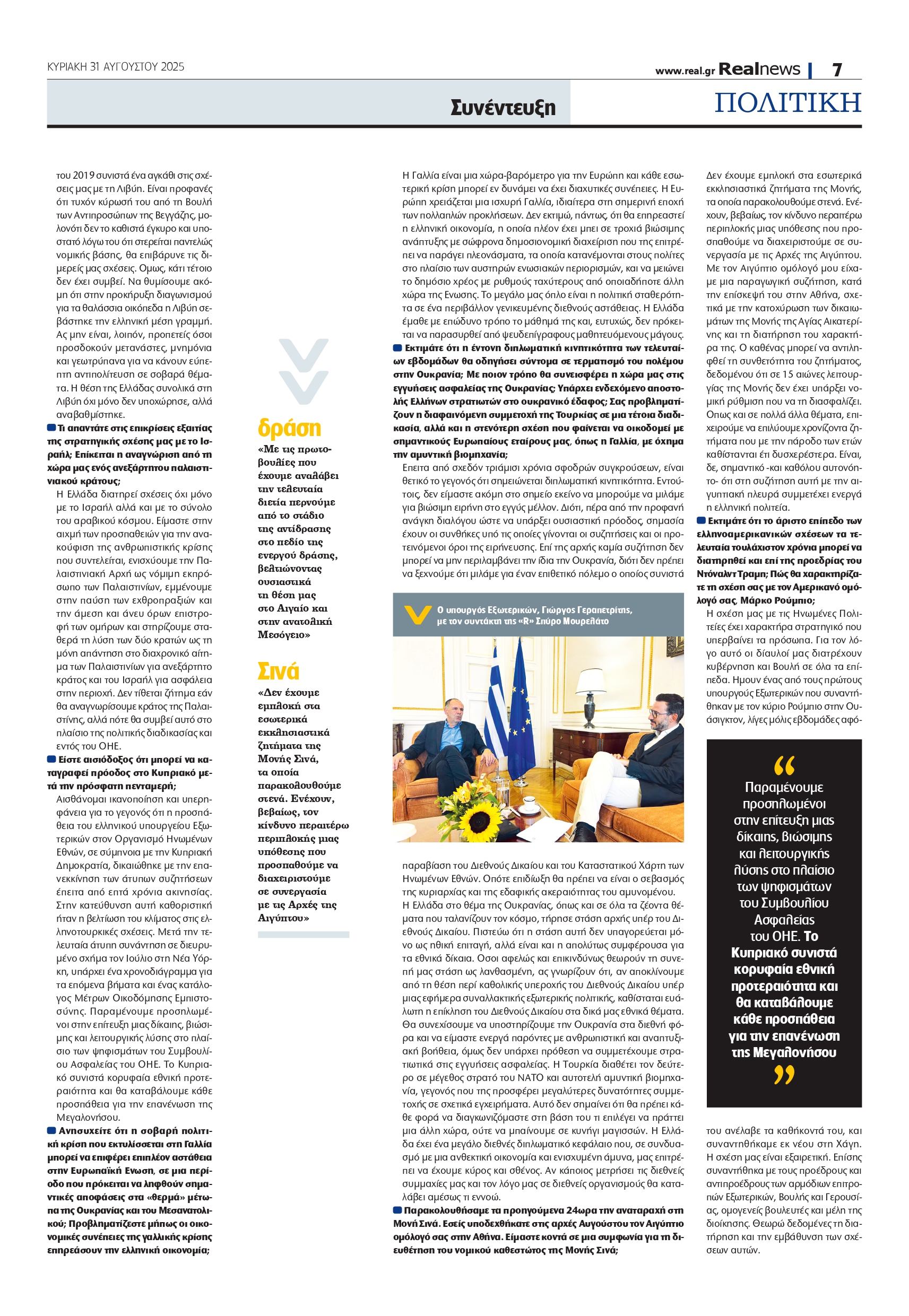 Σαφές μήνυμα προς πάσα κατεύθυνση πως το έργο της ηλεκτρικής διασύνδεσης Ελλάδας – Κύπρου θα προχωρήσει κανονικά στέλνει ο υπουργός Εξωτερικών, Γιώργος Γεραπετρίτης. Μόλις δύο ημέρες μετά τις προκλητικές δηλώσεις του Τούρκου ομολόγου του Χακάν Φιντάν, ο Γ. Γεραπετρίτης μιλά στη Realnews ξεκαθαρίζοντας πως η Ελλάδα δεν ετεροπροσδιορίζεται, ενώ απευθυνόμενος στην Αγκυρα επισημαίνει ότι η χώρα μας δεν πτοείται από τις αντιδράσεις κανενός όταν υπερασπίζεται το εθνικό συμφέρον. Ο υπουργός Εξωτερικών αναγνωρίζει ότι το παράνομο τουρκολιβυκό μνημόνιο είναι αγκάθι στη σχέση Ελλάδας – Λιβύης, τονίζοντας όμως ότι η Βουλή της Βεγγάζης δεν το έχει κυρώσει.
