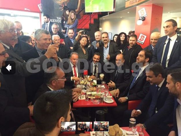 Με φίλους της Νέας Δημοκρατίας και τοπικά στελέχη συναντήθηκε αμέσως μετά την παρέλαση σε καφετέρια του Ρεθύμνου, ο Κυριάκος Μητσοτάκης.Ο Πρόεδρος της ΝΔ ήπιε τσικουδιές και άκουσε μία μαντινάδα σχετικά με τα μέτρα της κυβέρνησης.”Ο Κρητικός δεν προσκυνά, είναι σκληρός σαν πέτρα. Μην υπογράψεις πρόεδρε, του ΣΥΡΙΖΑ τα μέτρα” έλεγε η μαντινάδα.Μαζί με τον πρόεδρο της ΝΔ, ήταν οι βουλευτές Όλγα Κεφαλογιάννη και Γιάννης Κεφαλογιάννης.