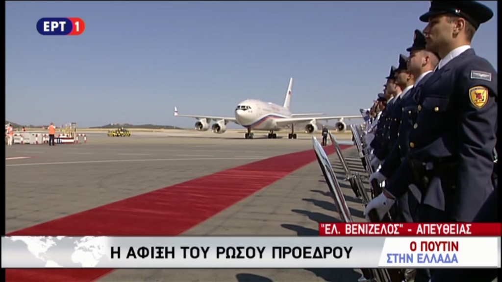 Με καθυστέρηση 90 λεπτών προσγειώθηκε λίγο πριν από τις πέντε το απόγευμα στο αεροδρόμιο «Ελευθέριος Βενιζέλος» το αεροπλάνο που μετέφερε τον Πρόεδρο της Ρωσίας Βλαντιμίρ Πούτιν.