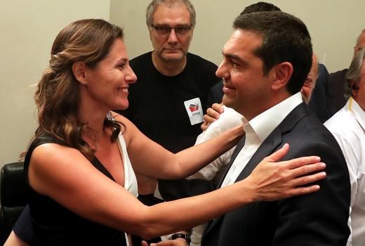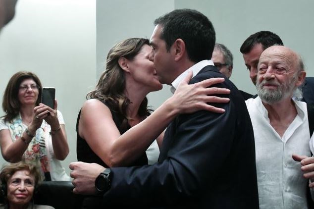 Στο πλευρό του συντρόφου της βρίσκεται η Μπέτυ Μπαζιάνα, η οποία έδειξε τη στήριξή της στον Αλέξη Τσίπρα, μετά την ήττα στις εθνικές εκλογές προσφέροντάς του μια ζεστή αγκαλιά κι ένα τρυφερό φιλί.