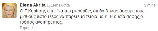 Η Έλενα Ακρίτα έγραψε πριν από λίγο στο twitter