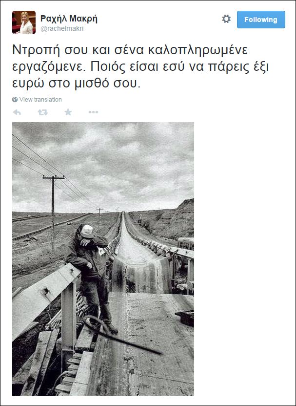 Η βουλευτής του ΣΥΡΙΖΑ ανήρτησε στον προσωπικό της λογαριασμό στο Twitter φωτογραφίες από τα εργοτάξια της ΔΕΗ παραθέτοντας σχόλια υπέρ των αυξήσεων που προβλέπονται από τη σύμβαση.