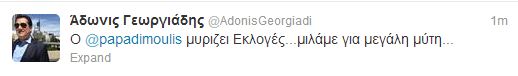 Διαβάστε την απάντηση του βουλευτή της Νέας Δημοκρατίας, Άδωνι Γεωργιάδη, στον κοινοβουλευτικό εκπρόσωπο του ΣΥΡΙΖΑ, Δημήτρη Παπαδημούλη, στο twitter…