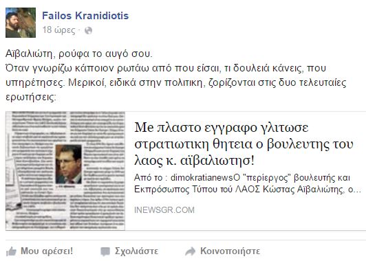 Η απάντηση του Κρανιδιώτη σε στέλεχος της Εθνικής Ενότητας: “Ρούφα το αυγό σου…”