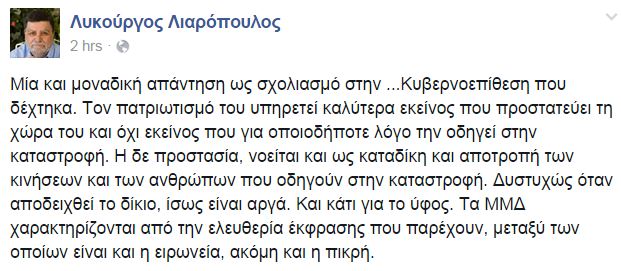 Σήμερα, απάντησε για αυτή του την άποψη, από τον προσωπικό του λογαριασμό στο Facebook.