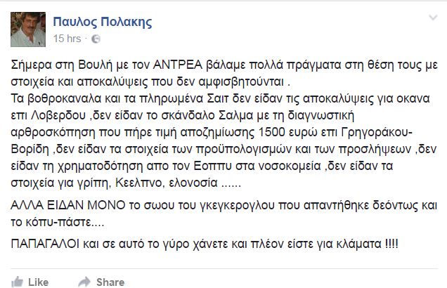 Ολόκληση η ανάρτηση του κ. Πολάκη:
