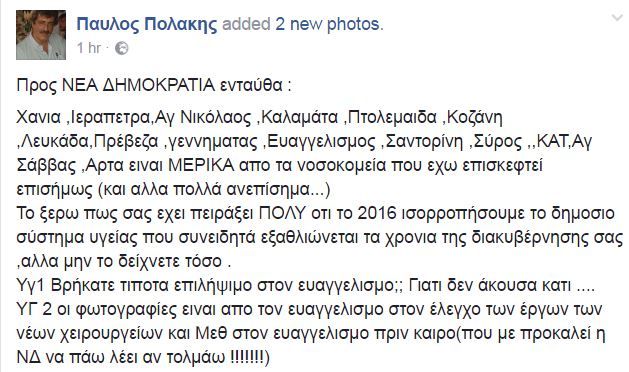 Ολόκληρη η ανάρτηση του Πολάκη: