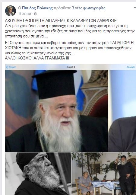 Την αντίδραση του Παύλου Πολάκη τα όσα έγραψε στο blog του ο Μητροπολίτης Αιγιαλείας και Καλαβρύτων Αμβρόσιος.