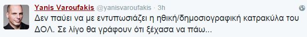 “Δεν παύει να με εντυπωσιάζει η ηθική / δημοσιογραφική κατρακύλα του ΔΟΛ. Σε λίγο θα γράφουν οτι ξέχασα να πάω”