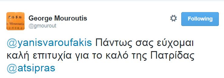Ο κ. Μουρούτης, κάνοντας mention στον κ. Βαρουφάκη και στον Πρωθυπουργό, Αλέξη Τσίπρα έγραψε: