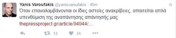 Δείτε αναλυτικά το tweet του πρώην υπουργού Οικονομικών, Γιάνη Βαρουφάκη.