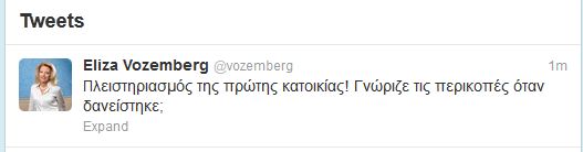 “Πλειστηριασμός της πρώτης κατοικίας! Γνώριζε τις περικοπές όταν δανείστηκε;” έγραψε η κυρία Βόζεμπεργκ.
