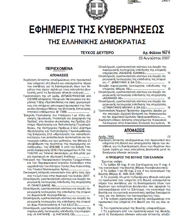 Όπως αναφέρεται στην απόφαση που δημοσιεύεται στο ΦΕΚ Β’΄1674 του 2007 και υπογράφεται από την τότε πρόεδρο της βουλής Άννα Μπενάκη-Ψαρούδα, αποφασίζεται “η χορήγηση από τον προϋπολογισμό της Βουλής, μετά τη διενέργεια εθνικών εκλογών έκτακτης αποζημιώσεως στο προσωπικό που υπηρετεί στη Βουλή, που απασχολήθηκε πέραν του συνήθους για τη διεκπεραίωση όλων των θεμάτων των εκλεγέντων βουλευτών που αφορούν τα αναγνωριζόμενα από το Σύνταγμα, τον κανονισμό της Βουλής και τις σχετικές κανονιστικές πράξεις δικαιώματα τους για την άσκηση του λειτουργήματός τους”.Επίσης αναφέρεται ότι “Με απόφασή μας, που θα εκδίδεται κάθε φορά, θα καθορίζονται το ύψος της έκτακτης αποζημιώσεως και οι δικαιούχοι αυτής” Σημειώνεται ότι, σύμφωνα με πληροφορίες ο πρόεδρος της βουλής Ευάγγελος Μεϊμαράκης, ενημερώθηκε για την είδηση και θα λάβει απόφαση για να μην δοθεί το συγκεκριμένο επίδομα.
