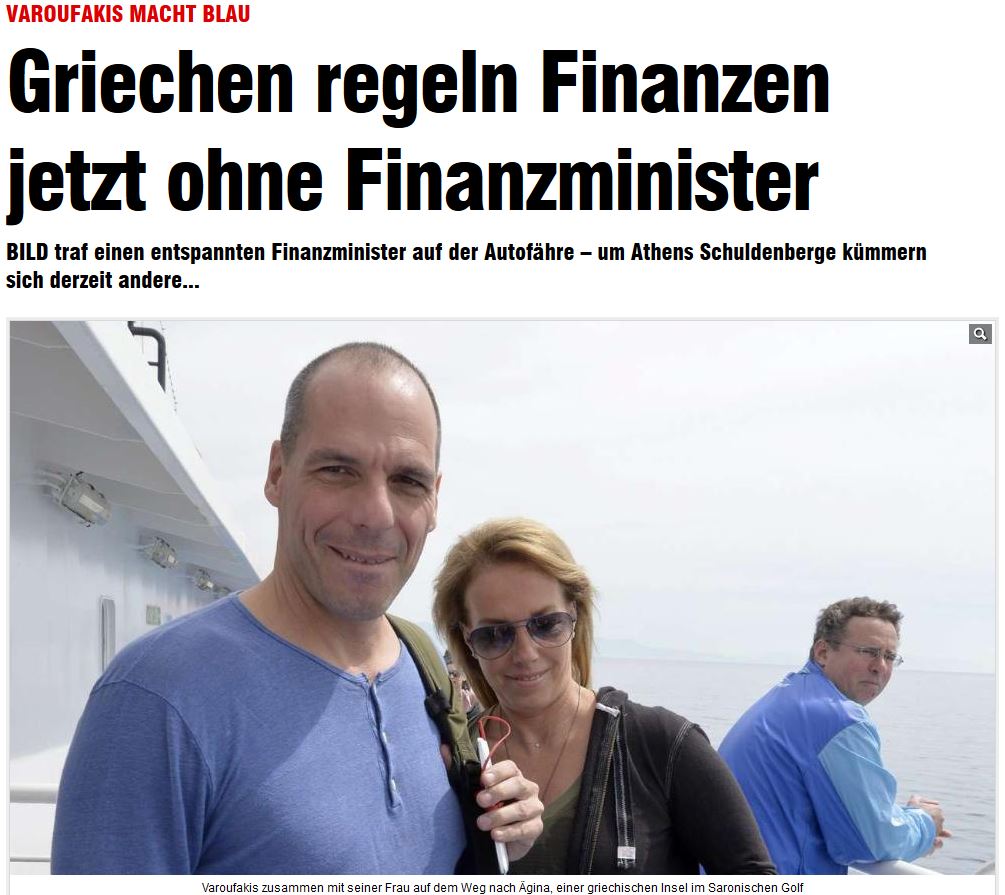 Την αποκάλυψη έκανε η γερμανική εφημερίδα Bild, δημοσιεύοντας τις φωτογραφίες του Γιάνη Βαρουφάκη στο ηλιόλουστο λιμάνι του Πειραιά και στο πλοίο της γραμμής για το καταπράσινο νησί του Σαρωνικού Κόλπου.