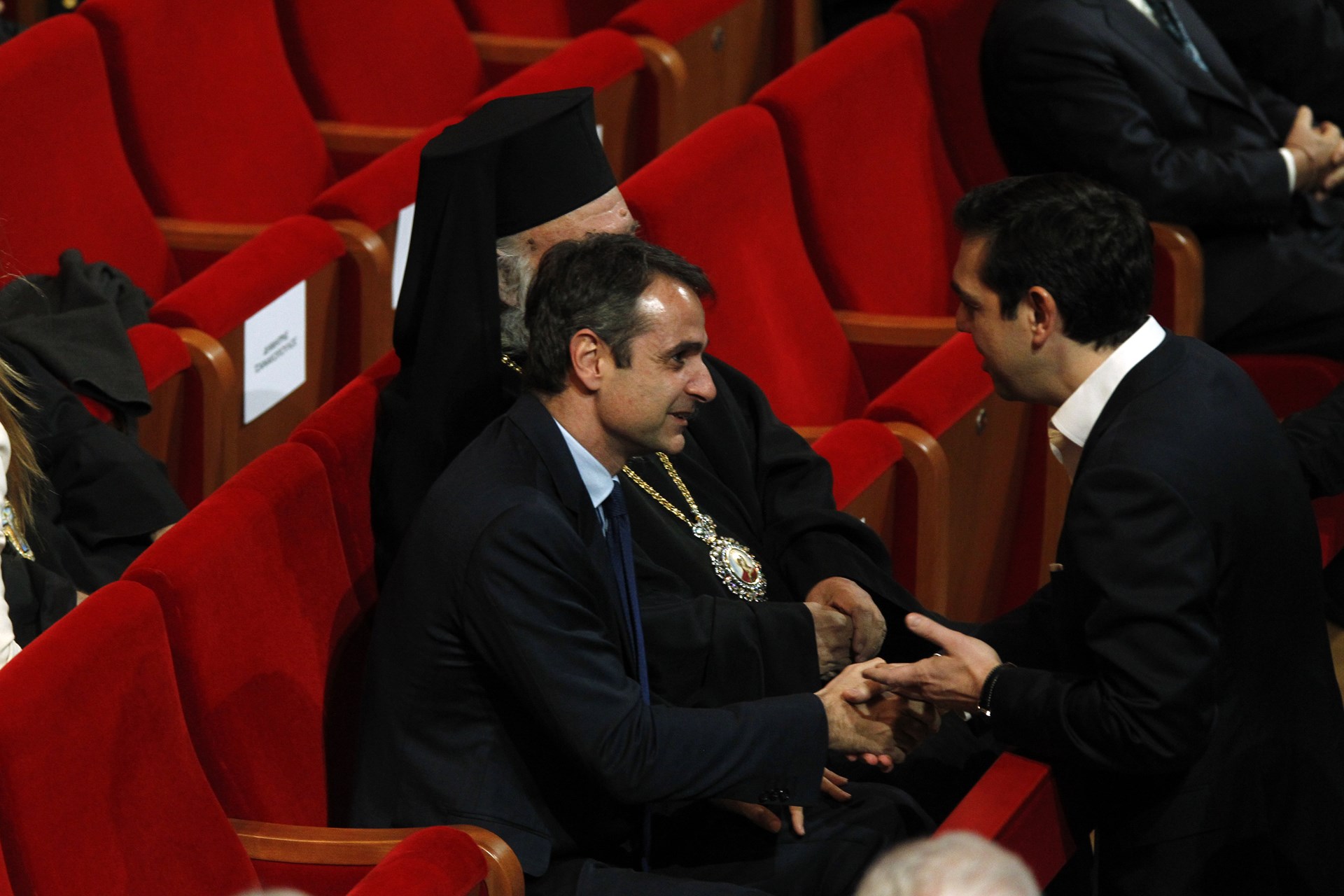 Ο Πρωθυπουργός, Αλέξης Τσίπρας, και ο πρόεδρος της Νέας Δημοκρατίας, Κυριάκος Μητσοτάκης, συναντήθηκαν πριν από λίγο στην τελετή παράδοσης του Κέντρου Πολιτισμού του «Ιδρύματος Σταύρος Νιάρχος», στο Δημόσιο.Οι δυο τους αντάλλαξαν μία θερμή χειραψία.