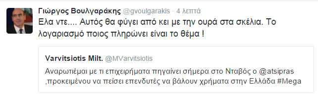 Συγκεκριμένα, ο κ. Βουλγαράκης, έγραψε: