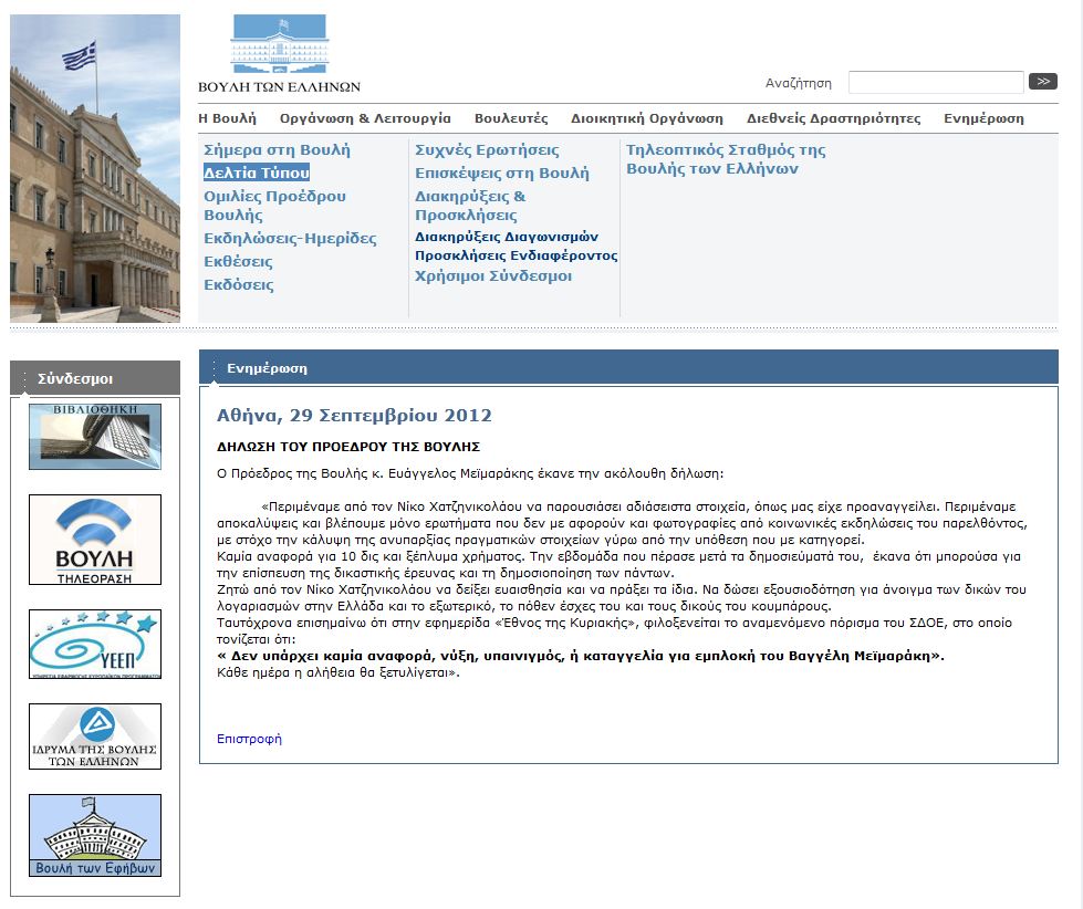 « Δεν υπάρχει καμία αναφορά, νύξη, υπαινιγμός, ή καταγγελία για εμπλοκή του Βαγγέλη Μεϊμαράκη».