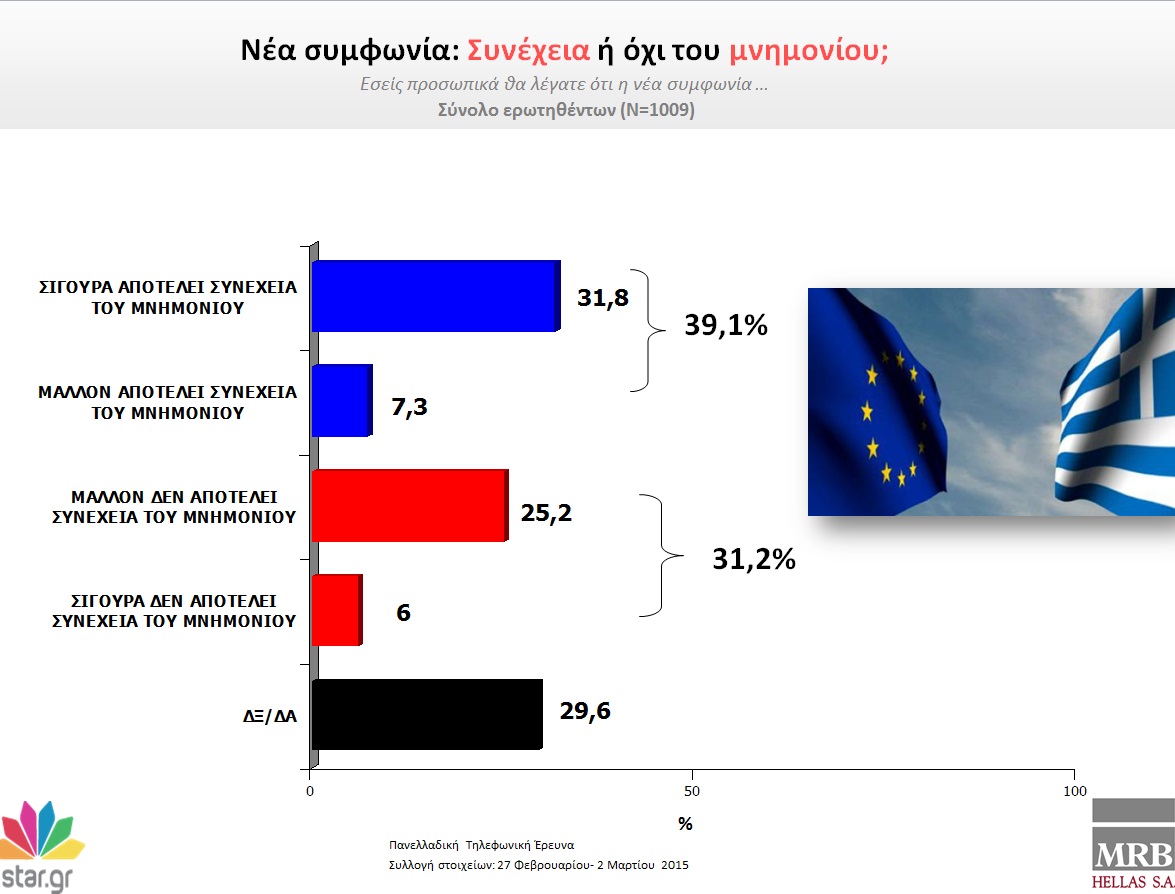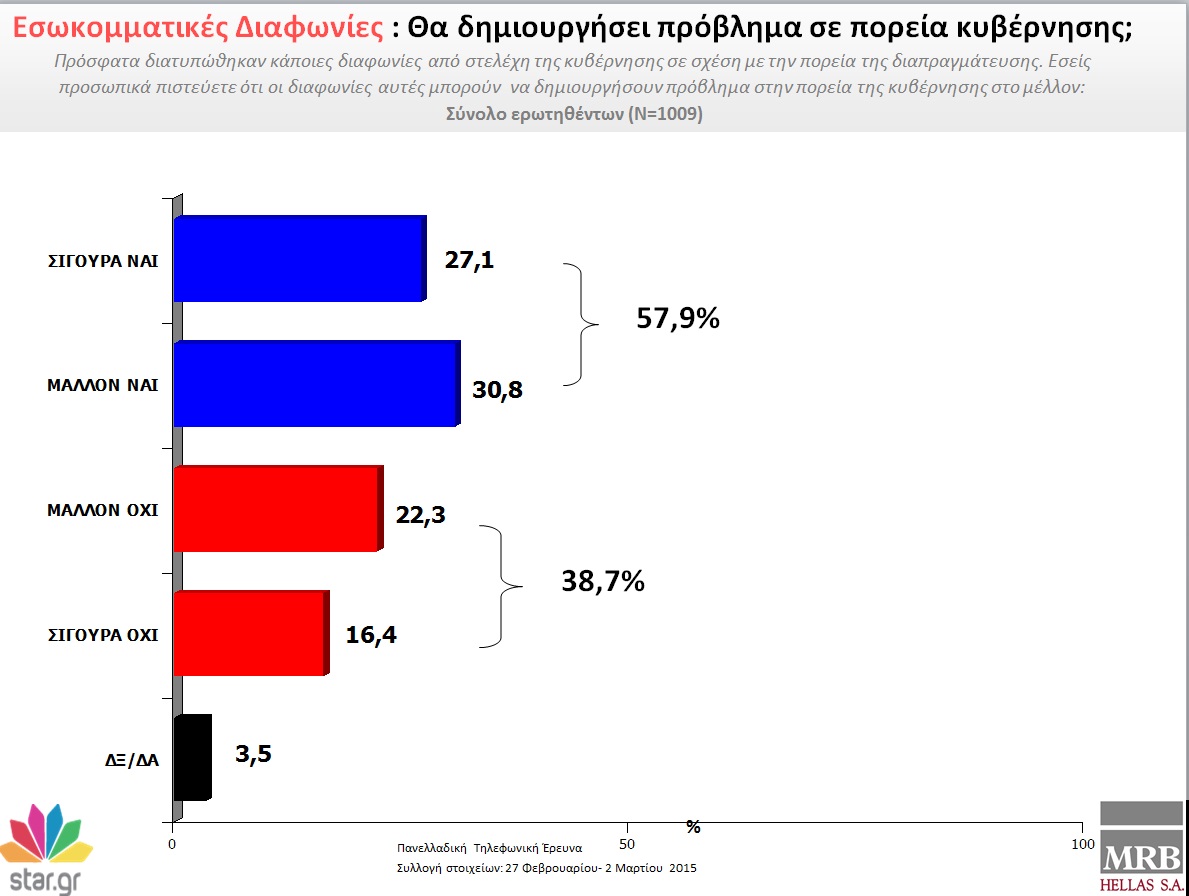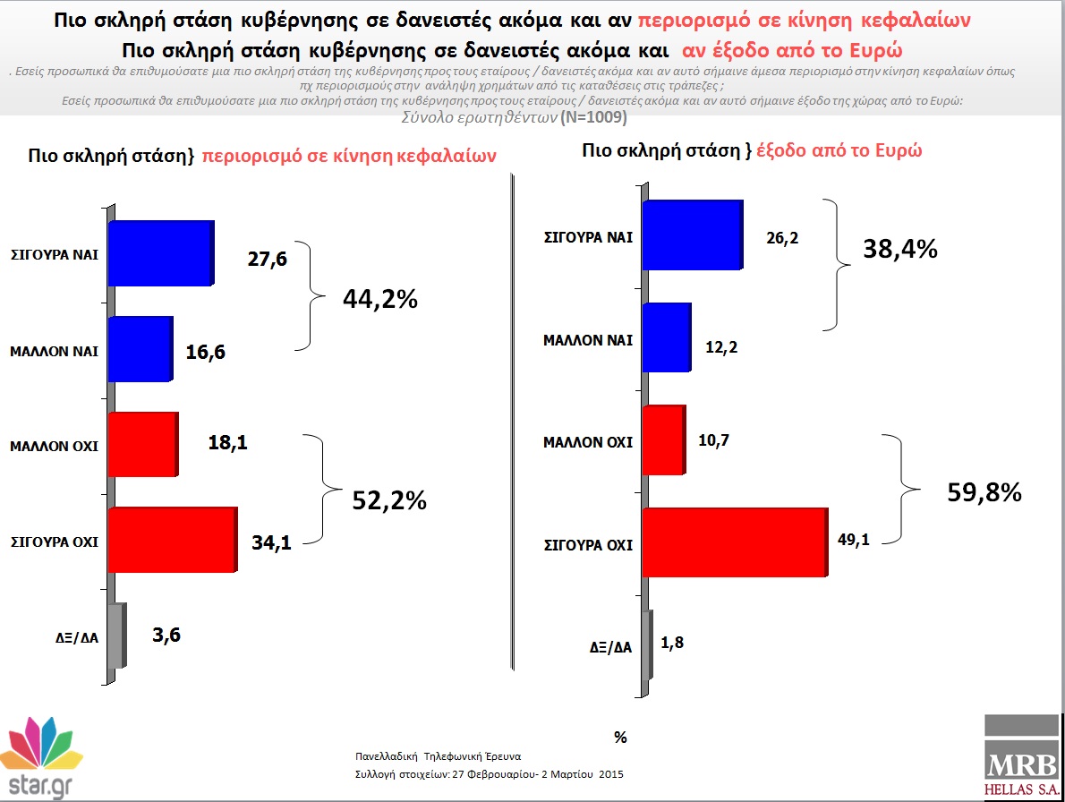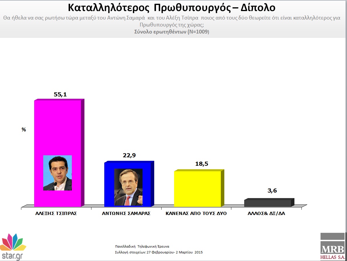 Προβάδισμα 22,1% στον ΣΥΡΙΖΑ έναντι της ΝΔ δείχνει η δημοσκόπηση της εταιρίας MRB για το star.gr.