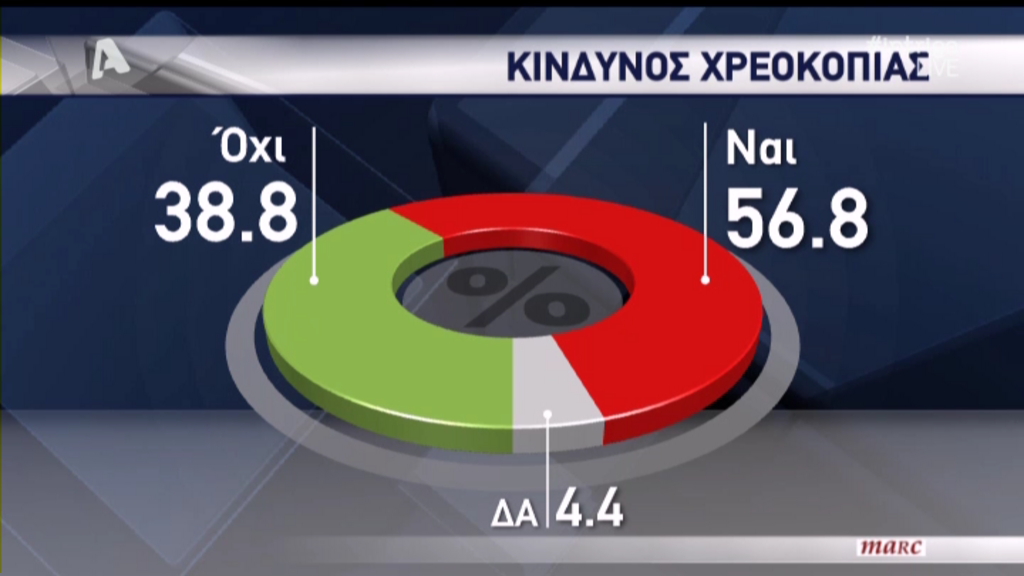 Το 56,8% θεωρεί ότι είναι ορατός ο κίνδυνος της χρεοκοπίας και όχι το 38,8%.