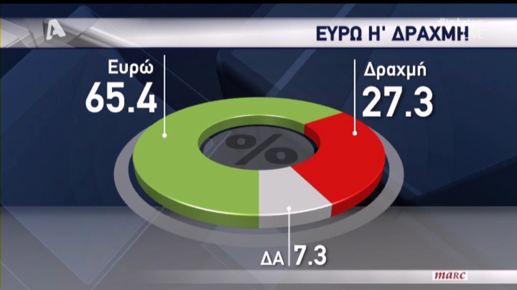 Την ίδια στιγμή το 65,4% επιθυμεί το ευρώ και την δραχμή θέλει το 27,3%.