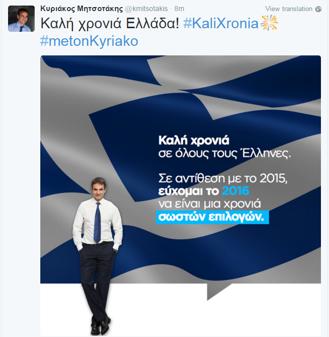 Την ευχή του για το νέο έτος έστειλε ο υποψήφιος για την ηγεσία της Νέας Δημοκρατίας, Κυριάκος Μητσοτάκης, με ανάρτηση του στο Twitter, επισημαίνοντας την ανάγκη για σωστές επιλογές. Διαβάστε αναλυτικά την ευχή του κ. Μητσοτάκη.