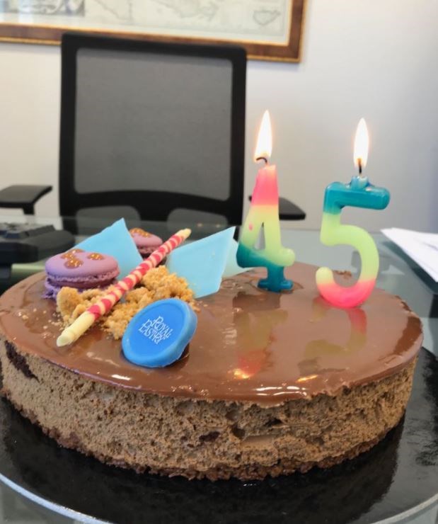 Ο κ. Γεωργιάδης ανέβασε φωτογραφίες στις οποίες σβήνει τα κεράκια με τον αριθμό 45 γράφοντας: “Πριν λίγο στο γραφείο μου οι συνεργάτες μου, μου έφεραν την πρώτη τούρτα για σήμερα. Τους ευχαριστώ.”
