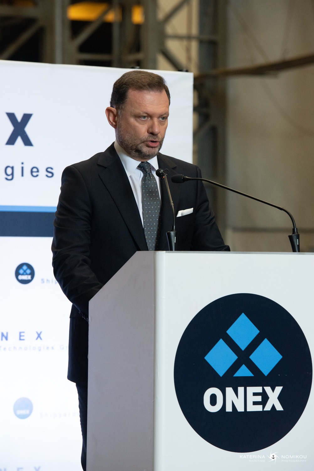 Ο Υπουργός Ανάπτυξης κ. Τάκης Θεοδωρικάκος υπογράμμισε ότι η επιτυχία των ναυπηγείων της ONEX συνιστά εθνικό στοίχημα, επισημαίνοντας ότι η κυβέρνηση και οι αρμόδιοι κρατικοί φορείς στηρίζουν έμπρακτα την προσπάθεια, με στόχο η ναυπηγική βιομηχανία να αποτελέσει βασικό πυλώνα ενός νέου παραγωγικού προτύπου για την ελληνική οικονομία. Τόνισε ακόμη τη σημασία της στρατηγικής συνεργασίας με τις Ηνωμένες Πολιτείες και της συμβολής της DFC στην επανεκκίνηση της δραστηριότητας, καθώς και τον ρόλο των διεθνών συνεργασιών της ONEX στη διεύρυνση των προοπτικών του ναυπηγείου.