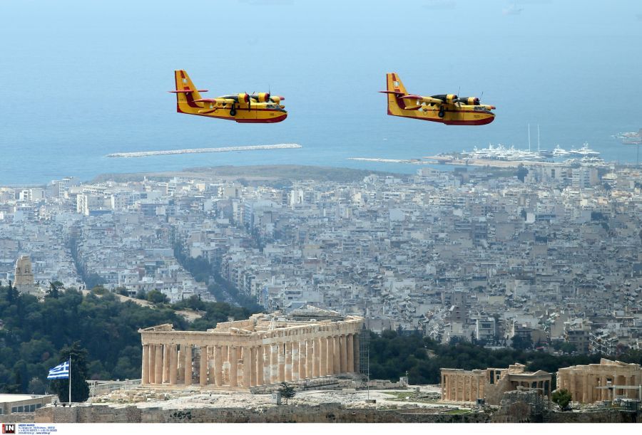 Πάνω από τον αττικό ουρανό πέταξαν σε άψογους σχηματισμούς όλοι οι τύποι αεροσκαφών και ελικοπτέρων των Ενόπλων Δυνάμεων (F-16 Viper, Rafale, F-16, Mirage2000-5 και F-4,CL-215,C-130 C-130), το ιπτάμενο ραντάρ, ελικόπτερα της Αεροπορίας Στρατού (Apache, chinook, NH-90, kiowa warrior,), του Πολεμικού Ναυτικου SH-70 καθώς και των Σωμάτων Ασφαλείας.