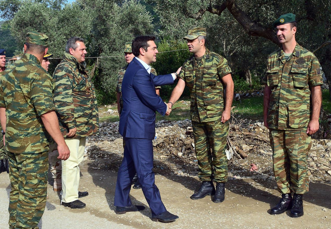 Όπως φαίνεται και στις φωτογραφίες, ο κ. Τσίπρας, συνοδευόμενος από τον υπουργό Εθνικής Άμυνας, Πάνο Καμμένο, χαιρέτησε τους στρατιώτες που βρίσκονται στην Σκόπελο, ενώ συνομίλησε και ενημερώθηκε από τους υπεύθυνους των συνεργείων για την πορεία των έργων αποκατάστασης.