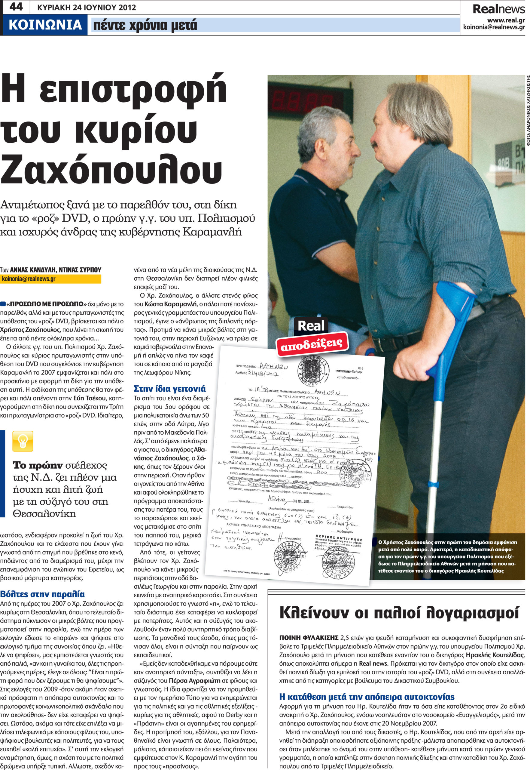 Η επιστροφή του κ. Ζαχόπουλου Enikos Newsroom 11:33, Δευτέρα 25 Ιουνίου 2012 πολιτική Πατήστε στην εικόνα για μεγέθυνση Μοιράσου το: σχολίασε κι εσύ (0 σχόλια) Ακολουθήστε το enikos.gr στο Google News και μάθετε πρώτοι όλες τις ειδήσεις Δείτε όλες τις τελευταίες ειδήσεις από την Ελλάδα και τον Κόσμο στο enikos.gr Ειδήσεις Ροή Ειδήσεων 1 ώρα πριν Κυριάκος Μητσοτάκης: Δεν έχω πρόθεση να δώσω περισσότερα χρήματα στους αγρότες – Η απάντηση για τις ύβρεις Ανεστίδη 1 ώρα πριν Συνεχίζεται το θρίλερ με την εξαφάνιση της Λόρας: «Δεν μου είχε πει ότι θέλει να έρθει στη Γερμανία» – Όσα ανέφερε ο αδελφός της και τα σενάρια που εξετάζονται 3 ώρες πριν WSJ: Οι χάρτες που εξηγούν γιατί ο Τραμπ θέλει τη Γροιλανδία για την εθνική ασφάλεια των ΗΠΑ 3 ώρες πριν Αγρότες: Στην τελική ευθεία για το ραντεβού της Δευτέρας με τον Κυριάκο Μητσοτάκη – Τι θα ζητήσουν οι «31» που θα καθίσουν στο τραπέζι του διαλόγου 3 ώρες πριν Αλέξης Τσίπρας: Το μεσημέρι η παρουσίαση του βιβλίου του, «Ιθάκη» στη Θεσσαλονίκη – Οι βασικοί άξονες της ομιλίας του 26 λεπτά πριν Μην παρασύρεστε από τα χαμόγελα: 8 ανεπαίσθητα σημάδια που μαρτυρούν ότι κάποιος δεν σας αντέχει καθόλου 1 ώρα πριν Τα 3 ζώδια που μπαίνουν σε μια δυναμική περίοδο – «Είναι η στιγμή για να κάνετε τις κινήσεις που σκέφτεστε, για μία καλύτερη ζωή» 2 ώρες πριν Έβγαινε ραντεβού με έναν άνδρα και εκείνος είχε κρυφή σχέση με άλλη γυναίκα επί δύο χρόνια – «Η σύντροφός του μου έκλεψε αντικείμενα αξίας 6.000 ευρώ» 3 ώρες πριν Νέα μελέτη ανατρέπει όσα γνωρίζουμε έως σήμερα για τον Δίσκο της Φαιστού – Επιτραπέζιο παιχνίδι χιλιάδων ετών ή κρυπτογραφημένο κείμενο; 8 λεπτά πριν Άγρια δολοφονία στην Αιτωλοακαρνανία: Πυροβόλησαν και σκότωσαν 50χρονο πρόεδρο κοινότητας 11 λεπτά πριν Job Match: Η ψηφιακή γέφυρα μεταξύ υποψηφίων και επιχειρήσεων της ΔΥΠΑ – Οι περιοχές και τα επαγγέλματα με τη μεγαλύτερη ζήτηση 19 λεπτά πριν Ηράκλειο: Εντοπίστηκαν 34 μετανάστες που αποβιβάστηκαν στους Καλούς Λιμένες 26 λεπτά πριν Μητσοτάκης για Ανεστίδη: Για το 1 λεπτό δημοσιότητας κάποιοι καταφεύγουν σε ακρότητες 26 λεπτά πριν Μην παρασύρεστε από τα χαμόγελα: 8 ανεπαίσθητα σημάδια που μαρτυρούν ότι κάποιος δεν σας αντέχει καθόλου ENIKOS NETWORK Λοιμωξιολόγοι: Σοβαρός κίνδυνος για ασθενείς από την απόσυρση βασικού αντιβιοτικού Χρόνια κόπωση και θολούρα: Πότε μπορεί να οφείλονται σε έλλειψη σιδήρου Χειμερινές εκπτώσεις 2026: Ανοιχτά αύριο τα καταστήματα – Τι πρέπει να προσέξουν οι καταναλωτές Εφορία: Στο τέλος Φεβρουαρίου λήγει η προθεσμία για την τακτοποίηση «παλιών» εκκρεμοτήτων – Ποιες αφορά Ο Google Assistant θα παραμείνει λίγο περισσότερο για ορισμένους χρήστες Android Τεστ προσωπικότητας: Το βάζο που θα επιλέξετε αποκαλύπτει πώς λύνετε προβλήματα στη ζωή σας περισσότερα 11:01 , Σάββατο 17 Ιανουαρίου 2026 Μητσοτάκης για Ανεστίδη: Για το 1 λεπτό δημοσιότητας κάποιοι καταφεύγουν σε ακρότητες Το βίντεο με τις ύβρεις του αγροτοσυνδικαλιστή, Κώστα Ανεστίδη εναντίον του, σχολίασε ο Πρωθυπ... 10:46 , Σάββατο 17 Ιανουαρίου 2026 Μητσοτάκης: Δεν έχει κλειδώσει η ημερομηνία για τη συνάντηση με Ερντογάν – Είπε μια χοντράδα ο Έντι Ράμα, νομίζω το κατάλαβε Ο Έλληνας Πρωθυπουργός, Κυριάκος Μητσοτάκης, σε συνέντευξή του στον Alpha, αναφερόμενος στην ά... 10:26 , Σάββατο 17 Ιανουαρίου 2026 Κυριάκος Μητσοτάκης: Δεν έχω πρόθεση να δώσω περισσότερα χρήματα στους αγρότες – Η απάντηση για τις ύβρεις Ανεστίδη «Δεν έχω καμία πρόθεση να δώσω πε
