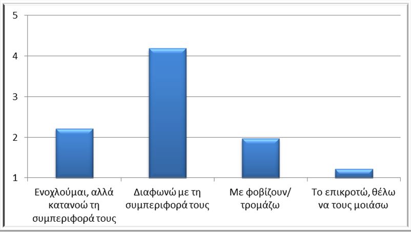 Γράφημα 5.3. Ιστόγραμμα τιμών των απαντήσεων των μαθητών Δευτεροβάθμιας Εκπαίδευσης σχετικά με τη γνώμη τους για τους μαθητές που είναι βίαιοι