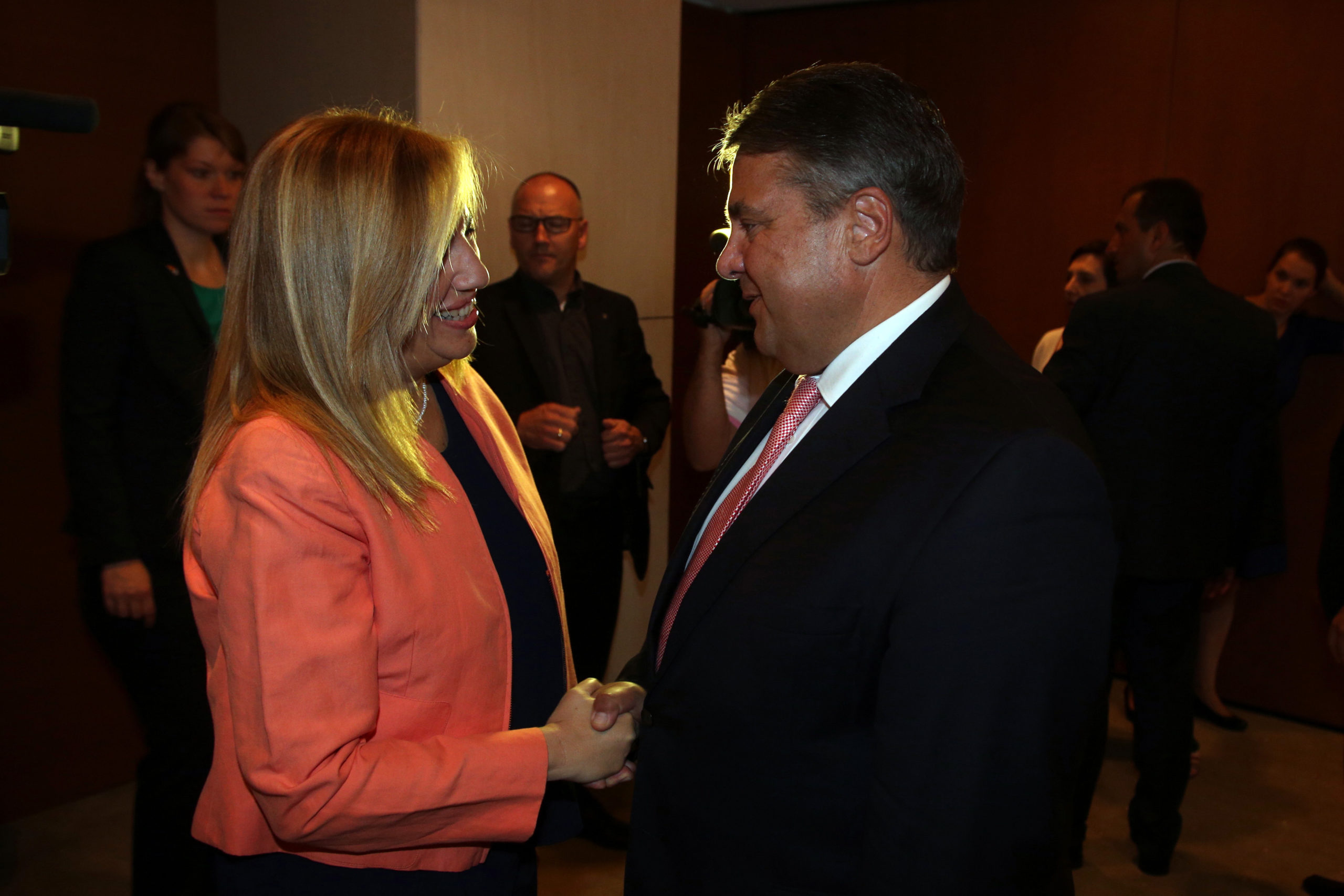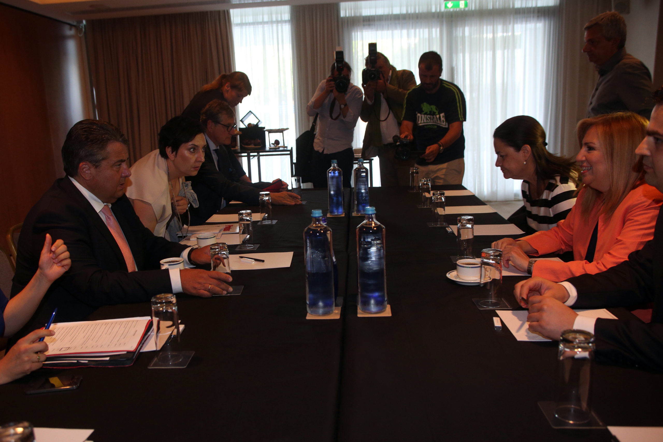 Η πρόεδρος του ΠΑΣΟΚ και επικεφαλής της Δημοκρατικής Συμπαράταξης, Φώφη Γεννηματά, συναντήθηκε σήμερα με τον Ζίγκμαρ Γκάμπριελ, αντικαγκελάριο της Γερμανίας, υπουργό Οικονομίας και ηγέτη του Σοσιαλδημοκρατικού Κόμματος (SPD).